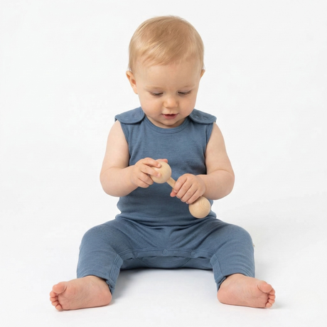 Промо цена €59,90 Редовна цена €71,00Единична цена /Не е налично Гащеризон (ромпър) от 100% органично фино мерино с копчета на раменете